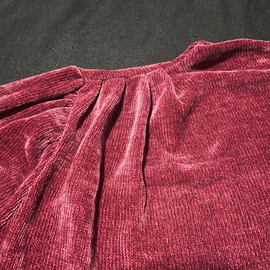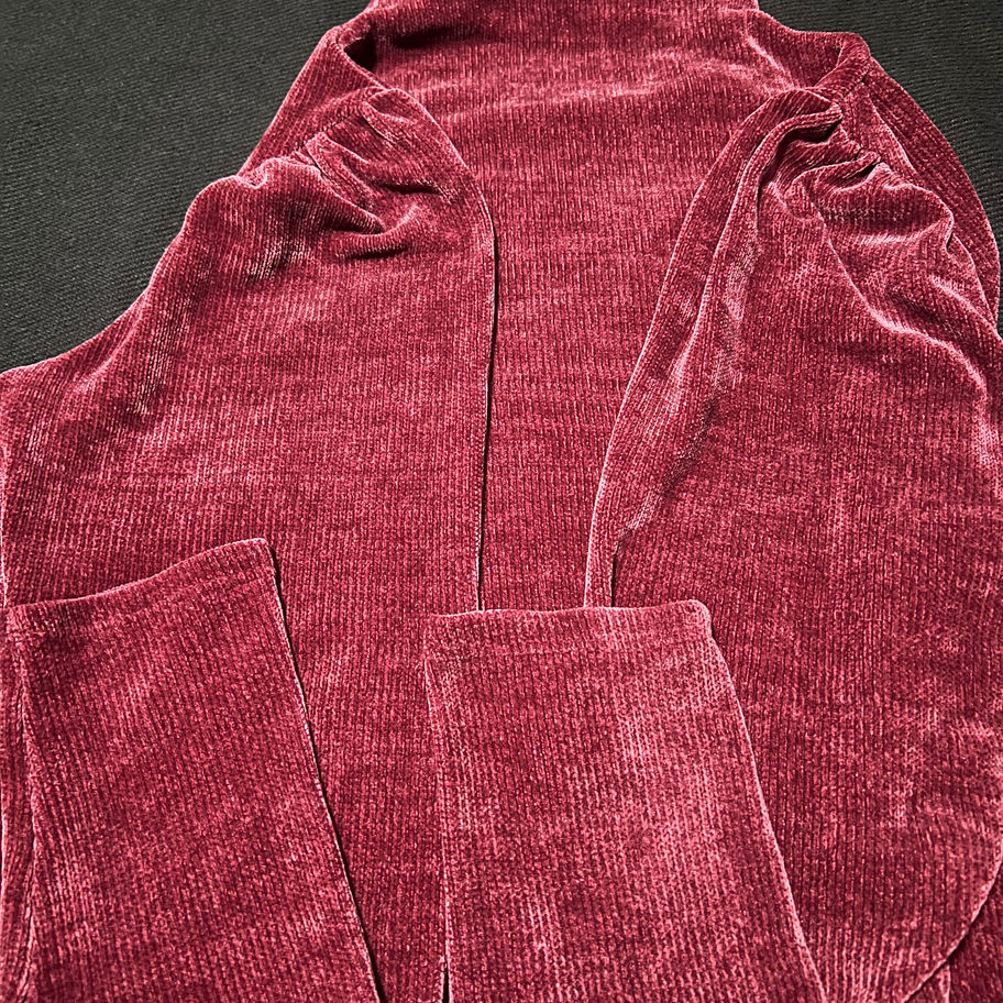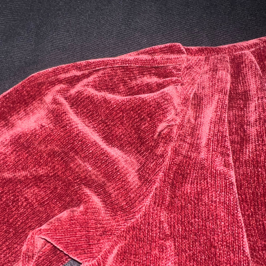 Burgundy Crushed Velvet Long Sleeve Top – Soft Stretch Fit, SIZE LARGE