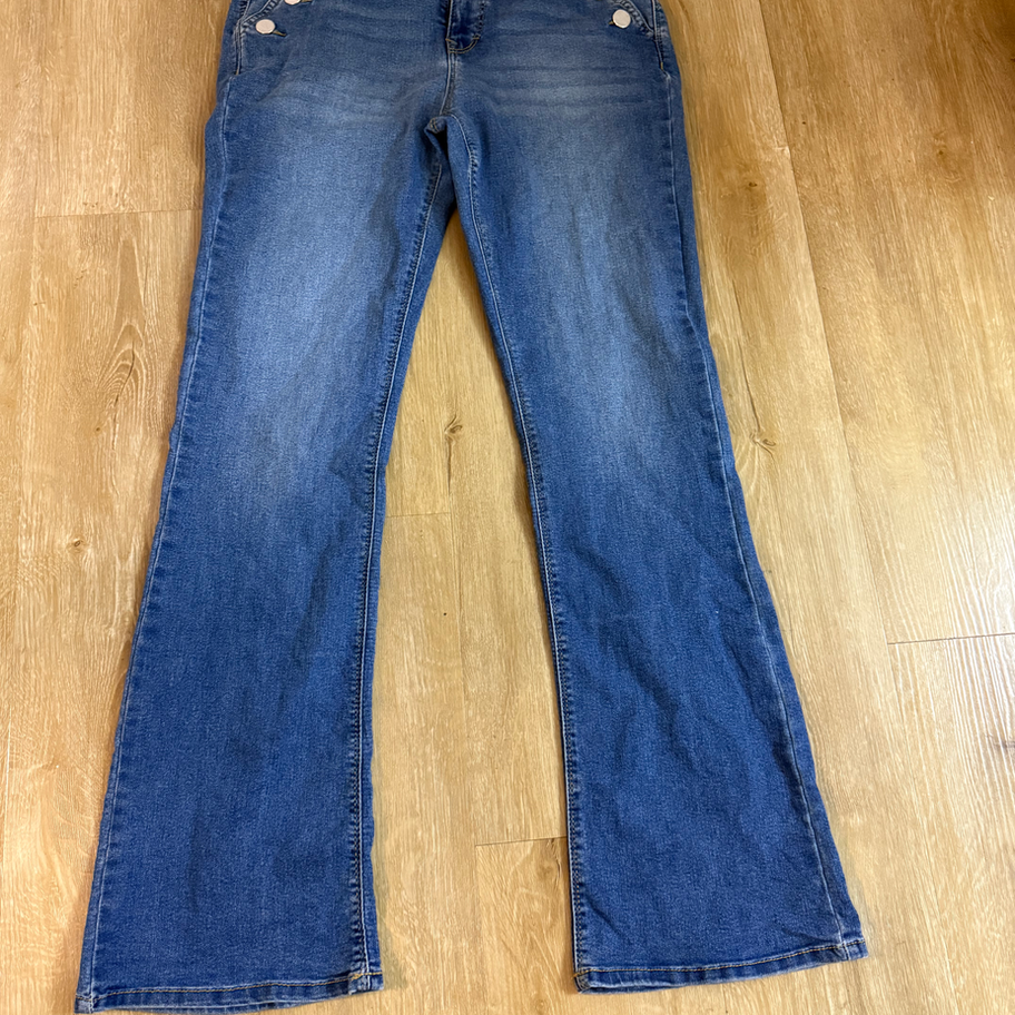 Curvy Women’s High-Waist Bootcut Jeans – Size 8/29, Button Accent Pockets