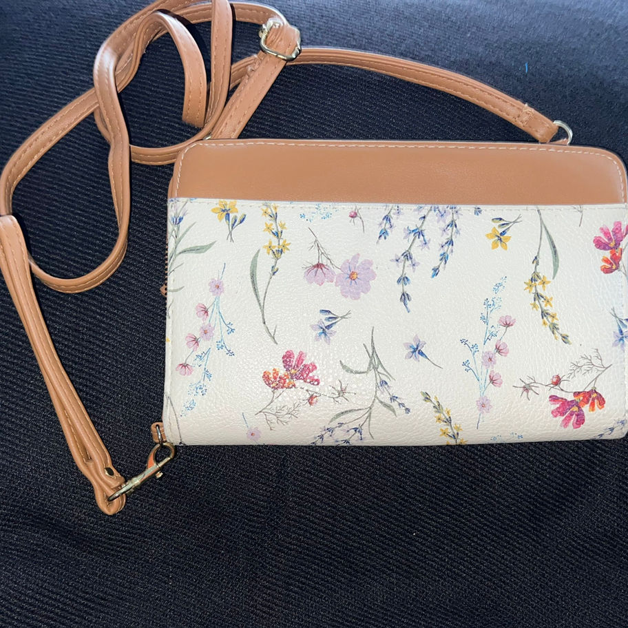 Floral Crossbody Bag with Wristlet & Front Zipper