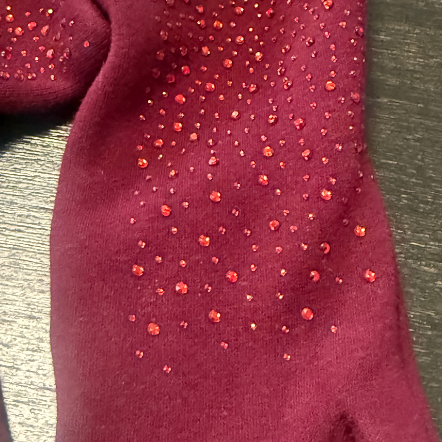 Sorrella Burgundy Winter Gloves with Red Rhinestone Accents – New with Tag